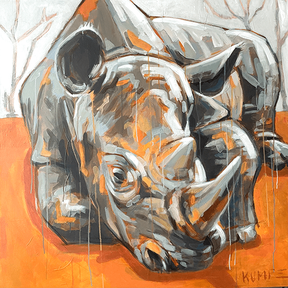 Nashorn 2. Acryl auf Leinwand, 100 x 100 cm